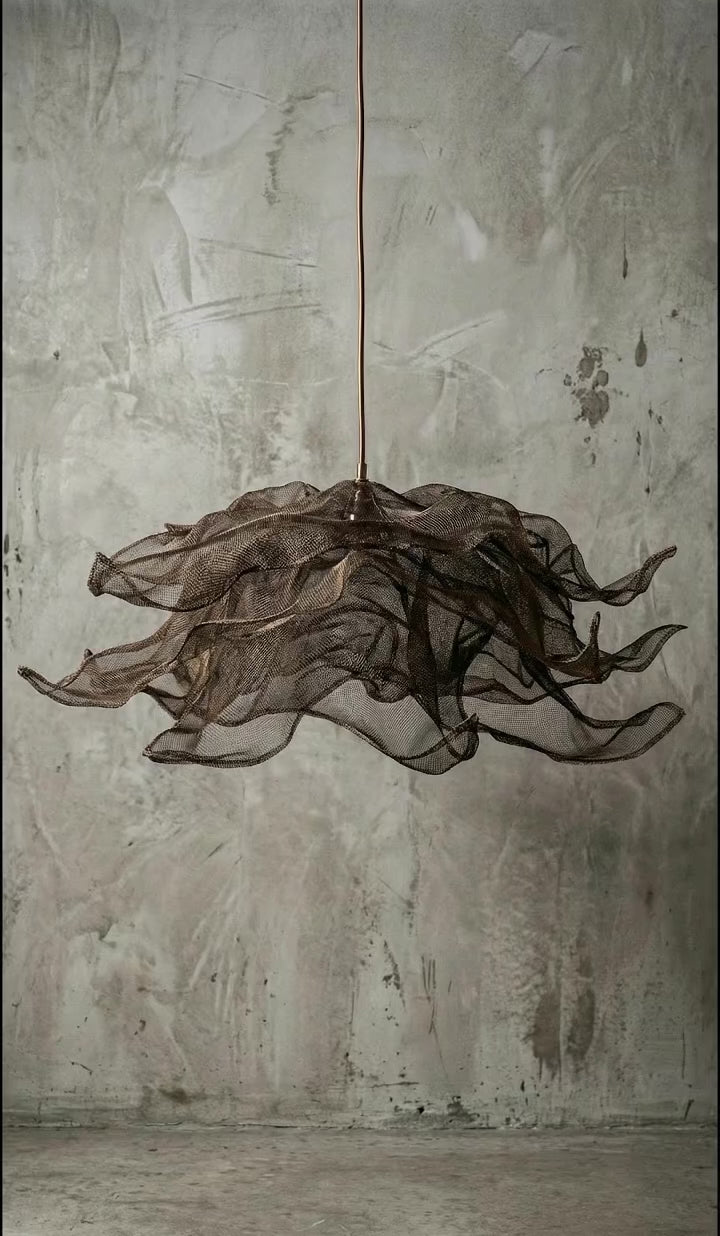 Perfeita para salas de jantar, cozinhas modernas, mesas de jantar, balcões americanos ou espaços comerciais sofisticados, a LP027 Flow proporciona uma iluminação indireta acolhedora e difusa, destacando-se como o centro das atenções sem ofuscar. O tom da malha de aço reflete a luz de forma sutil, criando um clima quente e convidativo – ideal para quem busca iluminação decorativa com personalidade.