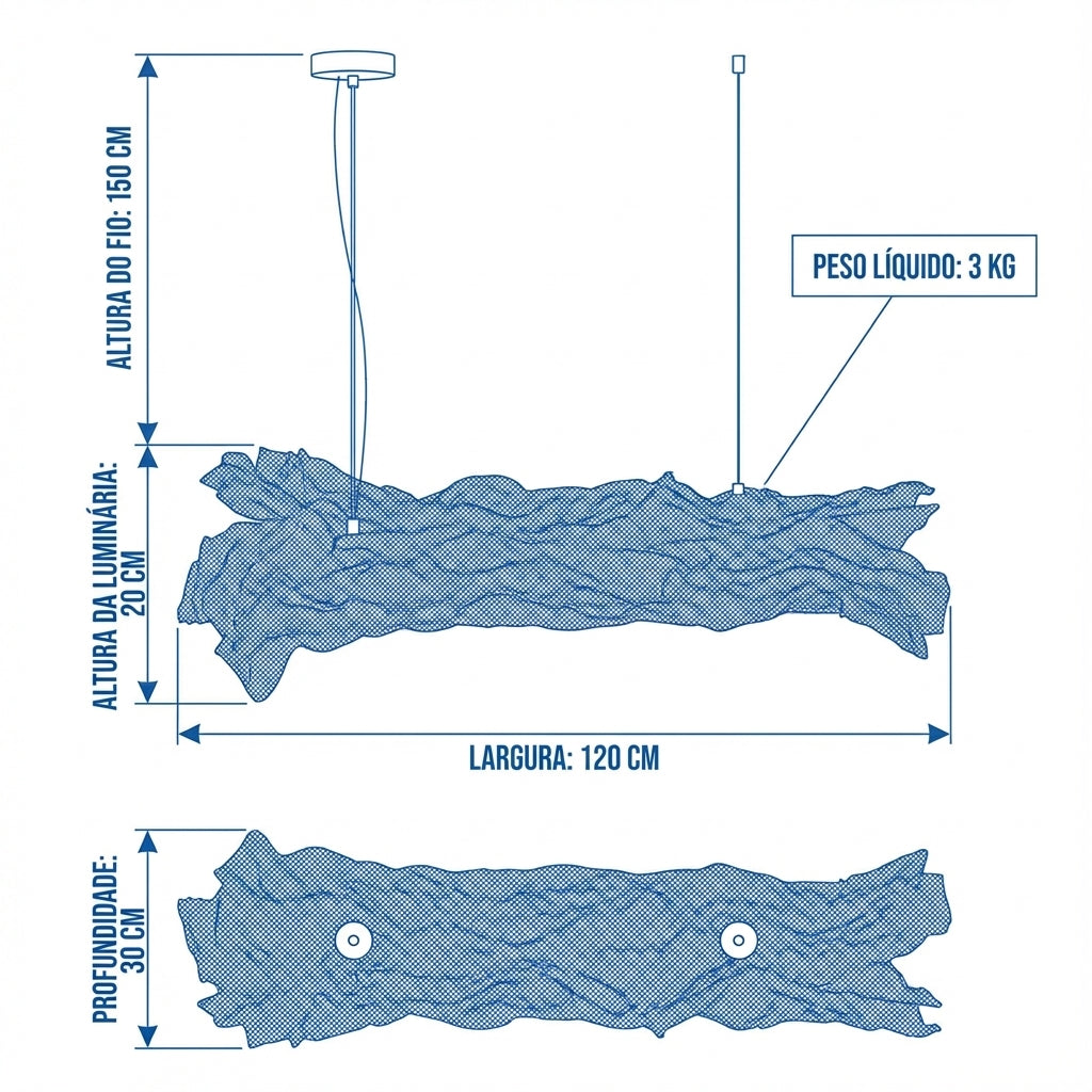 A Luminária Pendente LP038 Flow Retangular Grande da MMassuci é uma peça de design minimalista e contemporâneo, construída em malha de aço com estrutura retangular. Sua forma fluida — inspirada no movimento — transmite leveza, dinamismo e elegância, ideal para ambientes modernos que buscam equilíbrio entre estética e funcionalidade.